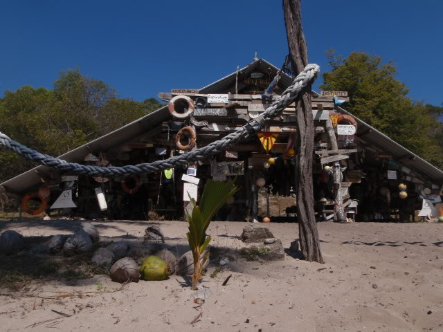It is a famous Aussie ‘yachtie’ spot, maybe notorious because despite it’s immense beauty other than too yachtie’s it doesn’t exist. You won’t find it in any Tourism Queensland brochure, there is no day spa, and there are no tourist boats. There is however the ‘Percy Hilton’. An A frame hut with amenities like running water, shade and bits and pieces to help the visitior enjoy paradise, it is also where you can leave a memento or plaque with your boat’s name.